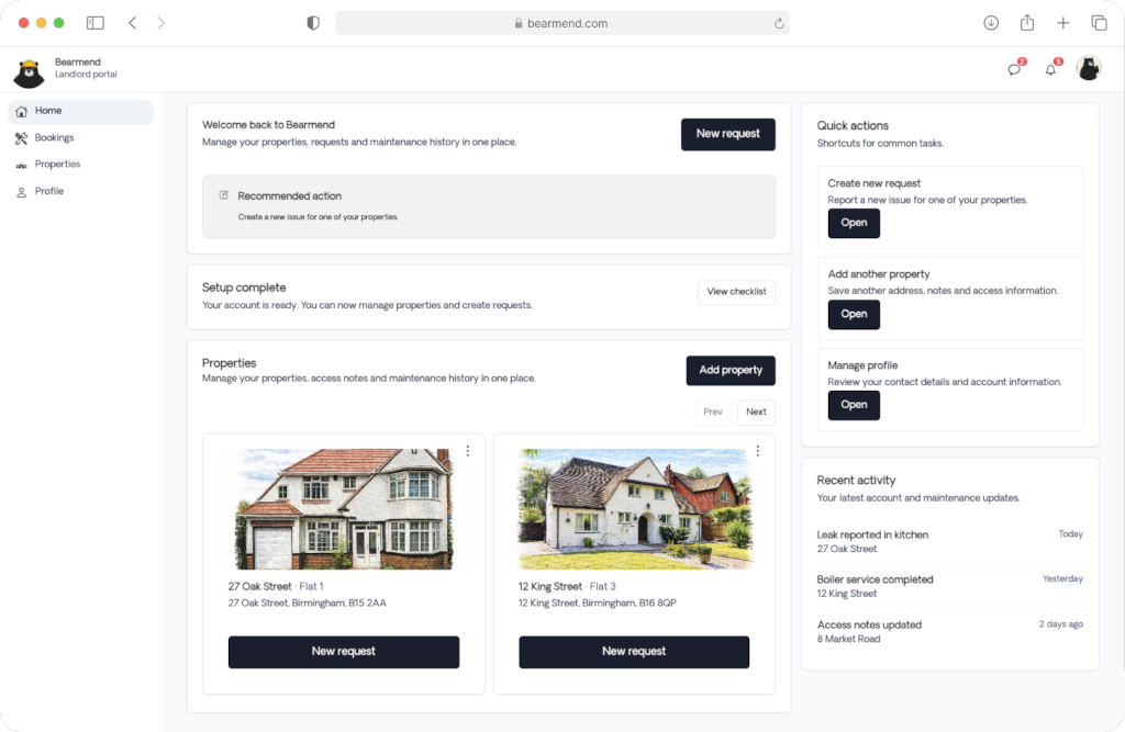 Bearmend helps landlords move from fragmented repair handling to a more controlled operating workflow — starting with one property and one clear process.